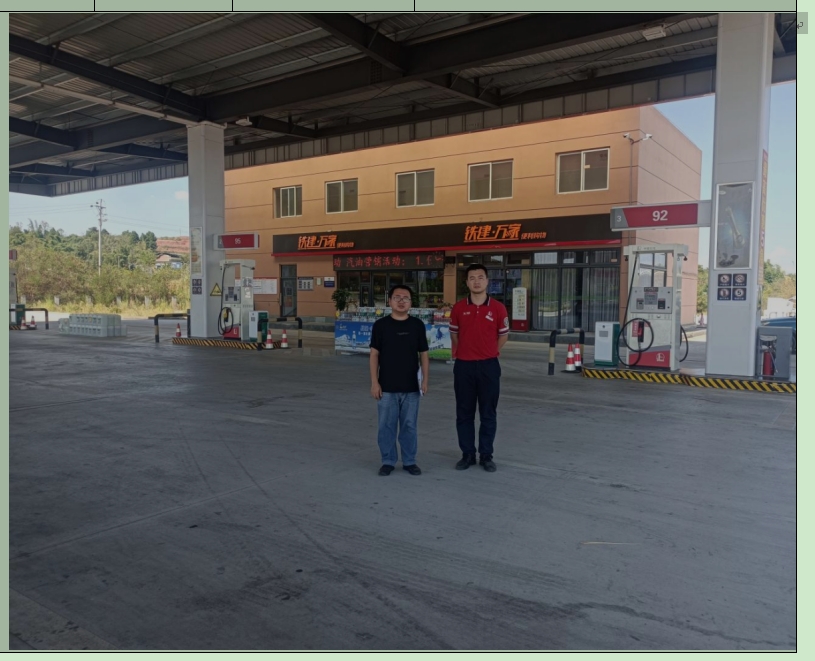 中铁建重庆石化销售有限公司合安高速合川隆兴服务区北侧加油站地处重庆市合川区隆兴镇马鞍村9组,加油站负责人:任思东。 该加油站的主要业务范围为:零售柴油、汽油。站内加油区设5台双枪加油机。储存设施包括:容积为30m³的92#汽油罐2个、30m³的95#汽油罐1个和30m³的0#柴油罐2个,油罐为单层钢质卧式油罐,置于钢筋混凝土结构的防渗罐池内;输油管道为单层无缝钢管沿管沟敷设。根据《汽车加油加气加氢站技术标准》(GB50156-2021)第3.0.9条对该加油站进行分级,该站属于二级加油站。 加油站现有员工13人(含南侧加油站),其中主要负责人和安全管理人员共3名。主要负责人、安全管理人员均已经培训,持证上岗;加油员由加油站培训合格后上岗。 |